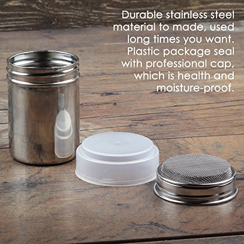 - BETTER MATERIAL: Food grade 304 stainless steel material can contact food directly, with polishing process on surface. ABS dust-proof cover blocks the moisture in the air, keep rest of powder dry and fresh.