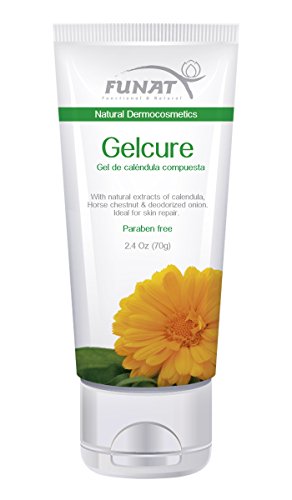 -. Feature : Care your skin with FUNAT'S GELCURE, its new gel lotion for the face created to promote the healing process of the skin, with moisturizing properties. GELCURE is a facial treatment repair developed to accelerate the process of regeneration and healing of injured skin, thanks to the natural extracts of calendula, onion, horse chestnut and aloe vera. / Skin is the most sensitive part of your body, it deserves the best. Four benefits are combined in this aloe vera gell : healing and regenerating, anti-inflammatory, antimicrobial and moisturizing. This calendula lotion applied is perfect for everyday use, you will see quick results in healing and regeneration of injured tissue. Being in gel, the absorption is faster and there are no visible residues as in creams. / If you want healthy and glowing skin, GELCURE is your answer. This scar care gel has also an antimicrobial activity against skin bacterias, your skin will be perfectly protected,clean and soft. You will feel like a summer refreshing sP.R.Itz after applying this calendula and aloe facial gel . Everyday you will notice that your skin is more supple and soft. / Always thinking of your comfort as well, this practical presentation make this organic calendula therapy creme easy to carry inside your purse or gym bag, everywhere you go. Enjoy all calendula and aloe vera benefits that make your skin look younger and softer. / GELCURE es un producto desarrollado para favorecer el proceso de regeneración y cicatrización de la piel lesionada, gracias a la actividad terapéutica que aportan los extractos naturales de: Caléndula, Cebolla, Castaño de Indias y Aloe vera. Siempre pensando en tu bienestar FUNAT, ha desarrolado este gel facial, que tratara tu piel con el cuidado que se merece.