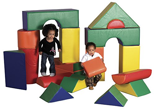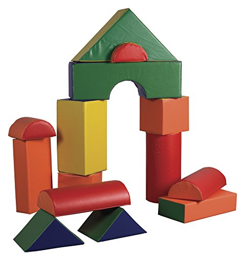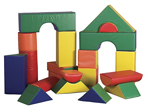 The ECR4Kids 21 Piece Jumbo Soft Blocks are designed for young architects, engineers and builders. Little ones can build up, out and all around with these lightweight jumbo blocks. The set includes a variety of triangles, rectangles, squares and half moon soft blocks. Encourage social interaction, imagination and invention as well as gross and fine motor skills. Soft, sturdy, polyurethane foam shapes are covered in reinforced, phthalate-free vinyl to create a comfy and stimulating learning environment. In addition, the SoftZone Soft Blocks have achieved GREENGUARD [GOLD} Certification, are CPSIA-compliant for safety and adhere to CA-117 requirements for fire retardancy.Feature