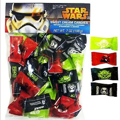 -. Feature : Star Wars Sweet Cream Candies NET Wt 7oz / strawberry and orange flavors / Approximately 56 per package / 7oz package net weight