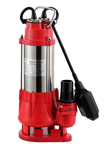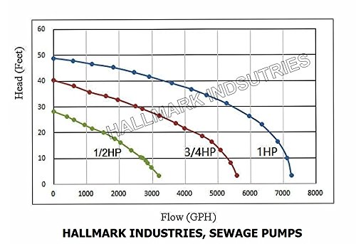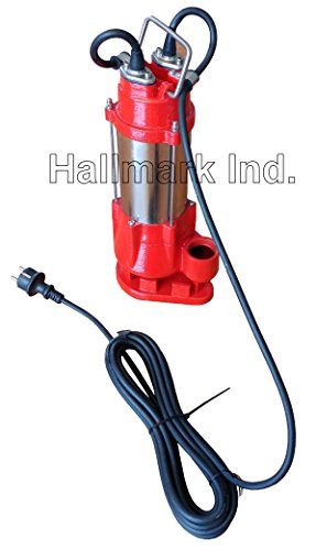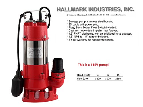 Hallmark Industries MA0387X-6 Sewage Pump, Stainless Steel, 1/2hp, 115V, with Float Switch, 3200 GPH/26' Lift, 20' Cable, Heavy Duty, Maximum Flow Rate, Stainless Steel