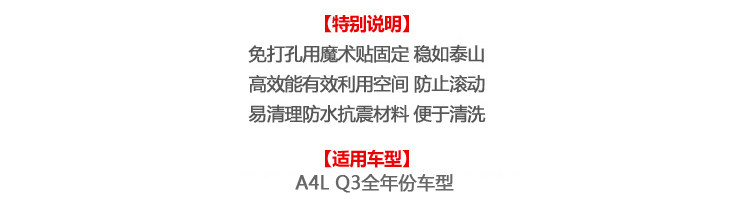 Audi A4L trunk dedicated baffle to solve the problem of waste of trunk space, high density organic fiber waterproof, punch-free design, efficient use of the Audi A4L trunk space for all Audi A4L models can be used.