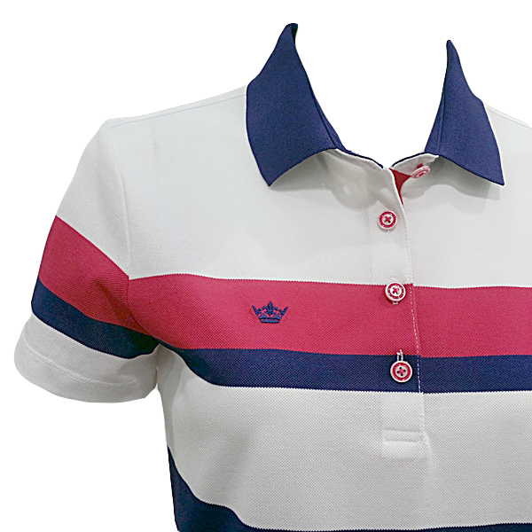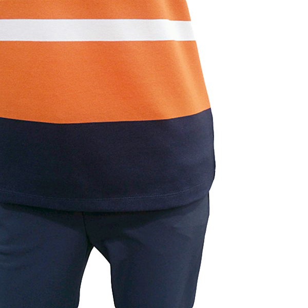 C/P 소재를 사용하여 선염으로 편직한 소재에 배색 프린트를 준 요코에리 티셔츠