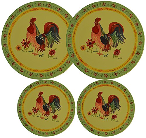 Set 4, Round Stove Top Burner Covers - Rooster Design. #82-574