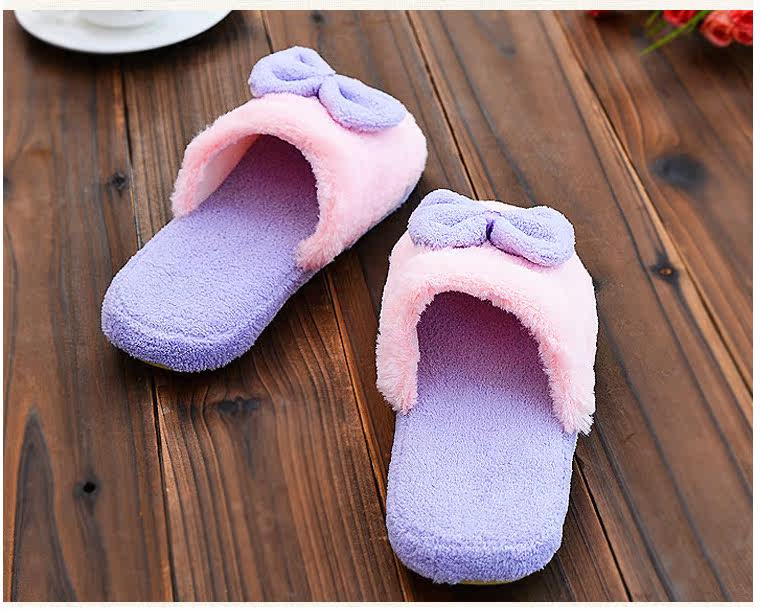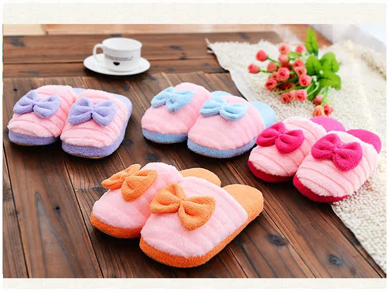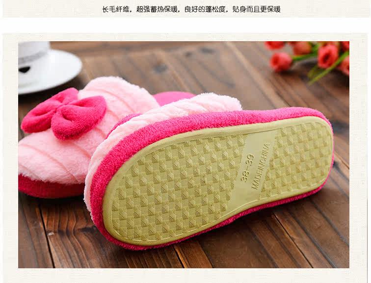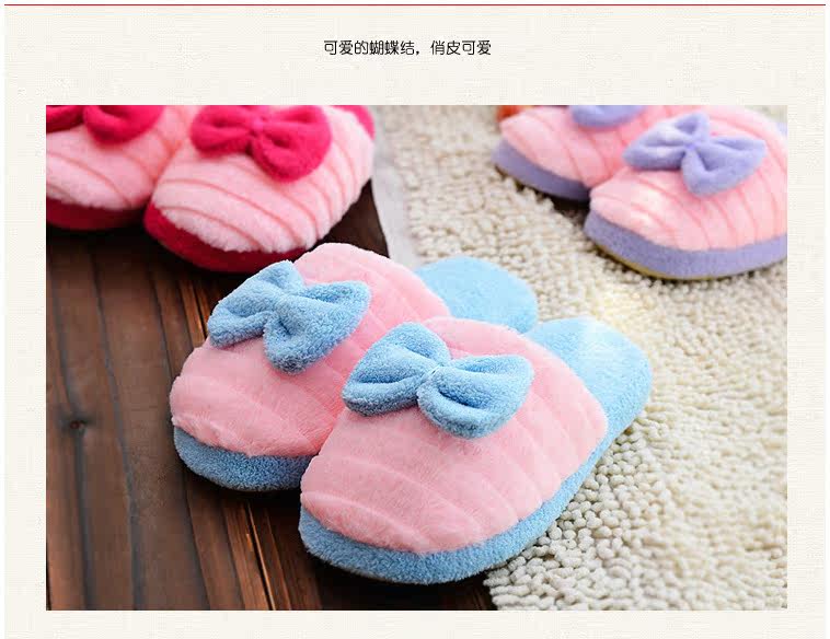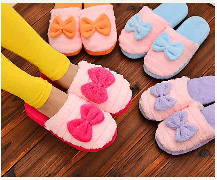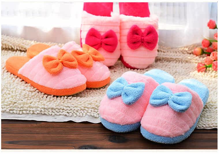 [Name]: Korean version of the cartoon cute bow cotton slippers cotton slippers winter lovers home floor