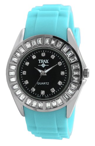 Trax TR3925-BTQ Women's Rox Turquoise Rubber Black Dial Crystal Bezel Watch