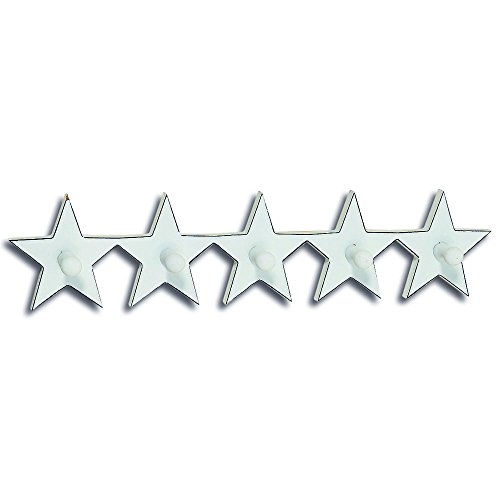 The Cape Cod Star Wall 5 Hooks, Rack, Organizer, Turned Knobs on Star Cut Outs Rustic White, Engineered Wood, 17 3/8 Inches, By Whole House Worlds