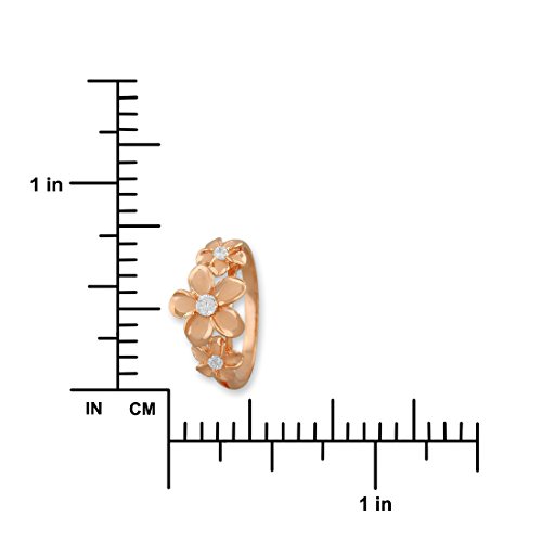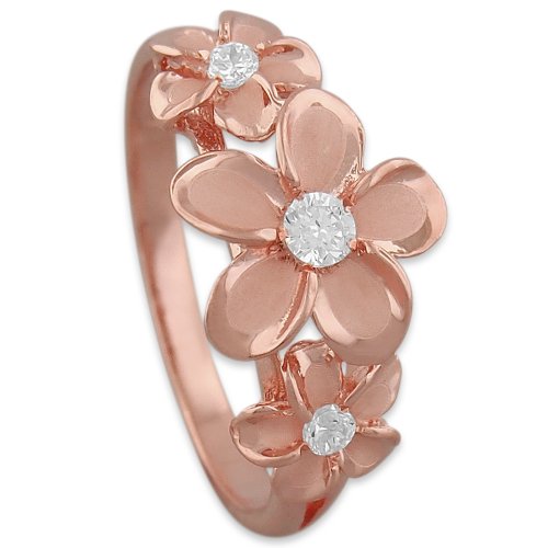 -. Binding : Jewelry -. Brand : Hawaiian Silver Jewelry -. Department : womens -. Feature : Plumeria: Very Fragrant And Abundant In The Hawaiian Islands / Accented With Synthetic Cubic Zirconia For Extra Sparkle / 14kt Rose Gold Plated Sterling Silver / Includes Black Pouch And Black Jewelry Box / A Beautiful And Unique Hawaiian Gift -. Label : Hawaiian Silver Jewelry -. Manufacturer : Hawaiian Silver Jewelry -. ProductGroup : Jewelry -. ProductTypeName : FASHIONRING -. Publisher : Hawaiian Silver Jewelry -. Studio : Hawaiian Silver Jewelry -. Title : 14kt Rose Gold Plated Sterling Silver Hawaiian Three Plumeria Synthetic CZ Ring