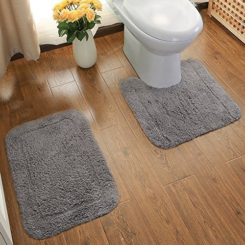 Ustide 100% Cotton Bathroom Rug Set - (Contour Toilet Rug and Bath Mat) 2 Piece Set - Grey