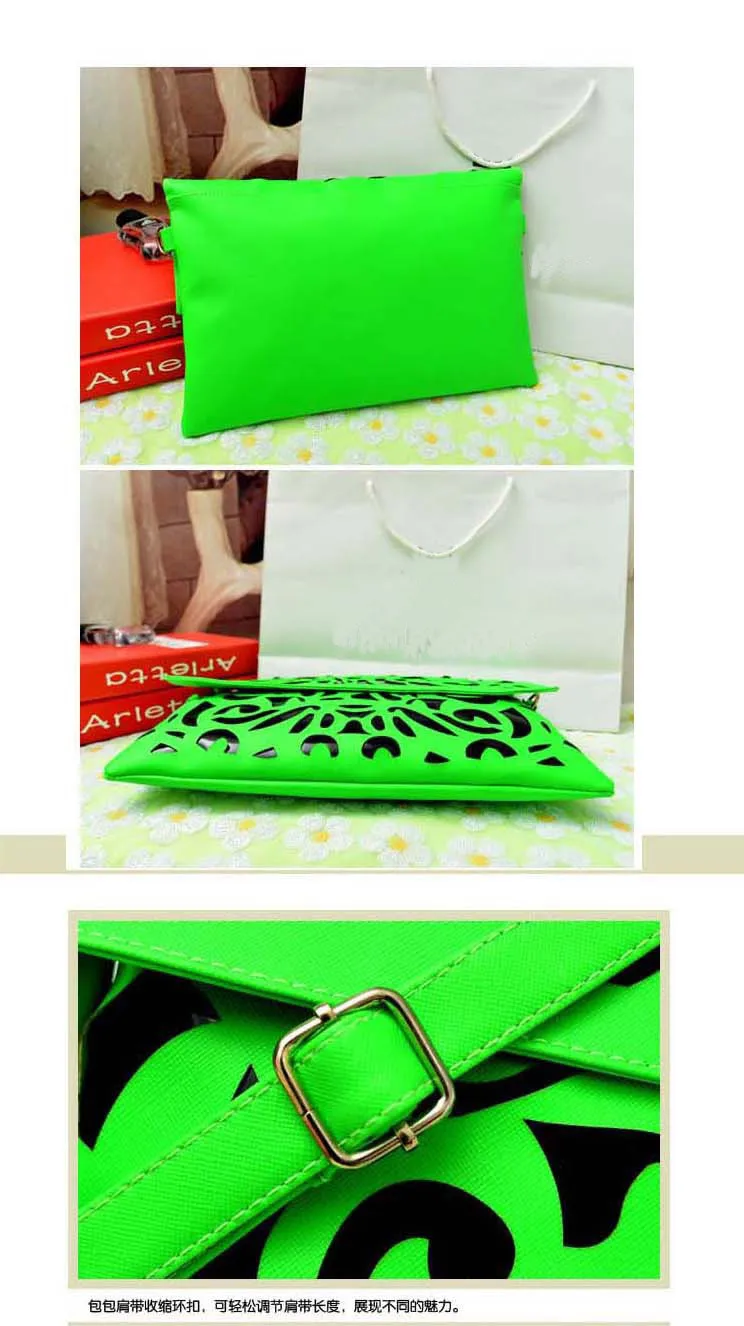 2016 Casual Popular Fluorescence Color Hollow Envelope WomenS Candy Color One Shoulder Handbags,Fashion Day Clutch Bags