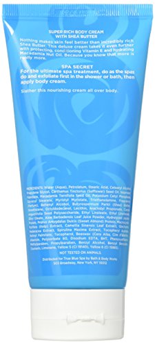 -. Binding : Misc. -. Brand : Bath & Body Works -. EAN : 0667526086996 -. Feature : Nothing makes skin feel better than incredibly rich Shea Butter / This super rich cream takes it even further with protecting, conditioning Vitamin E and hydrating Macadamia Nut Oil -. IsAdultProduct : 0 -. Label : Bath & Body Works -. Manufacturer : Bath & Body Works -. MPN : B00N57XDYU -. PackageQuantity : 1 -. PartNumber : B00N57XDYU -. ProductGroup : Beauty -. ProductTypeName : BEAUTY -. Publisher : Bath & Body Works -. Size : 6 Ounces -. Studio : Bath & Body Works -. Title : Bath & Body Works True Blue Spa Super Rich Body Cream 6 Oz. -. UPC : 667526086996