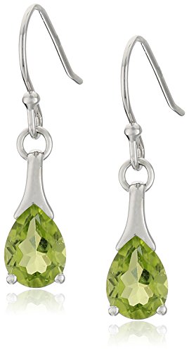 Sterling silver earrings featuring pear-shaped peridot drops