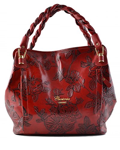 -. Brand : Cuoieria Fiorentina -. Department : womens -. Feature : Size: 15" L x 12" H x 5" W. Handle drop: 7". / Made in Italy. Italian embossed tooled leather with hand stitched detail. / Gold-tone hardware. Dual twisted handles. / Two front zip pockets. Back zip pocket. Zip closure. / Lined dual compartment separated by a zip top pocket. Interior zip and slip pockets. -. ProductGroup : Shoes -. ProductTypeName : HANDBAG -. Title : Cuoieria Fiorentina Italian Embossed Tooled Leather Hobo Handbag