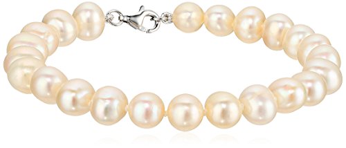 Sterling Silver White Freshwater Cultured Pearl Necklace, Bracelet, and Earrings Jewelry Set (7-8mm)