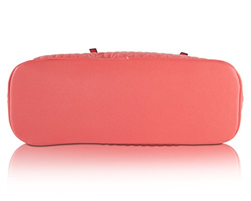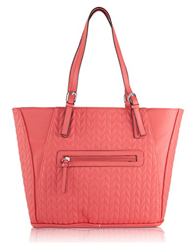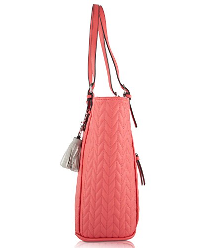 -. Feature : Top zip closure, double handles 9'' drop / Chevron quilted synthetic leather exterior / Front fringe tassel and signature detail / Baack zip pocket, roomy tote / Opens to fully lined interior with one zipper pocket and two slip pockets