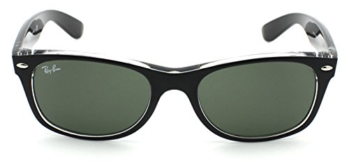- Title : Ray-Ban RB2132 New Wayfarer Color Mix Unisex Sunglasses (Black on Transparent Frame/Green Lens 6052, 55)