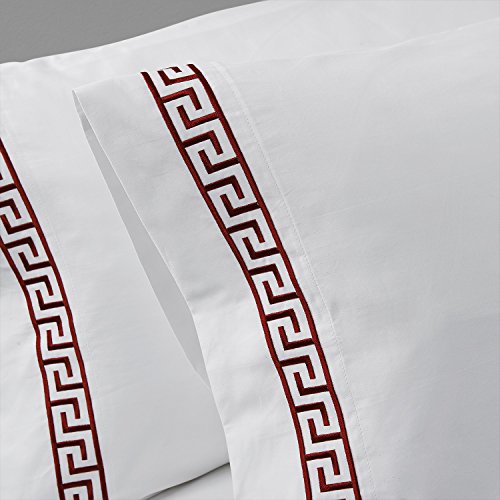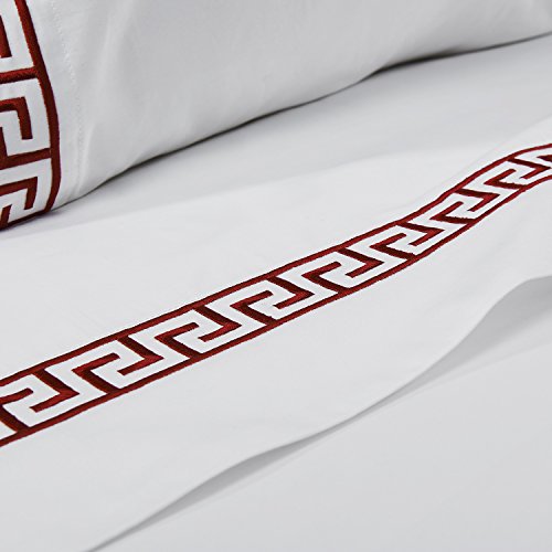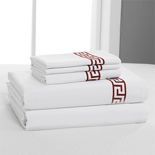 Simple&Opulence 100% Cotton 400 Thread Count Embroidery Sheet Set (Queen, Red)