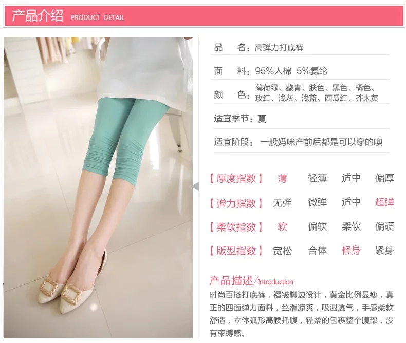 孕妇七分打底裤夏装托腹孕妇裤子韩国时尚孕妇装糖果色薄款超弹力