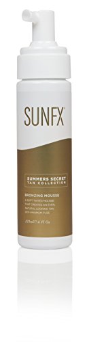 SunFX again revolutionizes the Tanning Industry with our New Tanning Foam! Our unique combination of natural tanning agents produce a remarkable instant tanning effect that can last up to 5 to 10 days on most skin types. This new generation tanning product also cares for your skin. Try it and see! Why is this product so sensationally different from all the others? It is infused with only best ingredients: the purest water, Natural Aloe Vera, Organic Green Tea, Natural Coconut and All Natural Approved DHA. SunFX Summer's Secret Bronzing Mousse feels luxurious as it glides on and yet it is so easy. Its quick drying and, and most importantly it produces a beautiful instant and natural looking tan. It contains no Parabens, No Alcohols or Artificial Preservatives. In conjunction with Salons and Spas and Beauty Professionals, We have worked hard to produce what we believe to be the most stunning and All Natural/Organic Tanning Mousse on the market. Nothing Compares!Feature