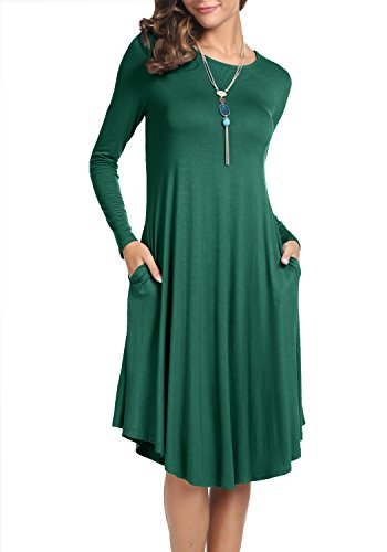 Levaca Women's Fall Plain O Neck Pockets Swing Loose Casual Midi Dress, in any single wear, or as a basic shirts,Have a good show in all seasons.