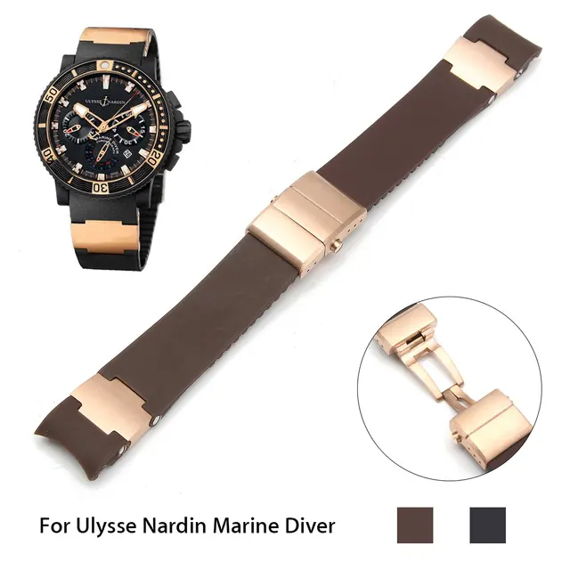 | [해외] 자동 방수 부드러운 고무 손목 시계 스테인레스 스틸 배 버클 시계 밴드 스트랩/율리스 나르 딘 해양 다이버 시계 남자 26 메터 |