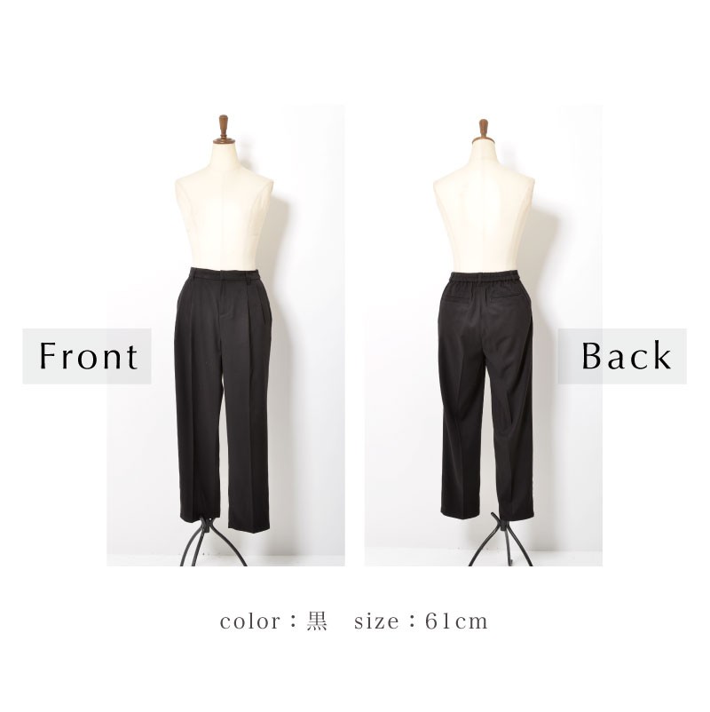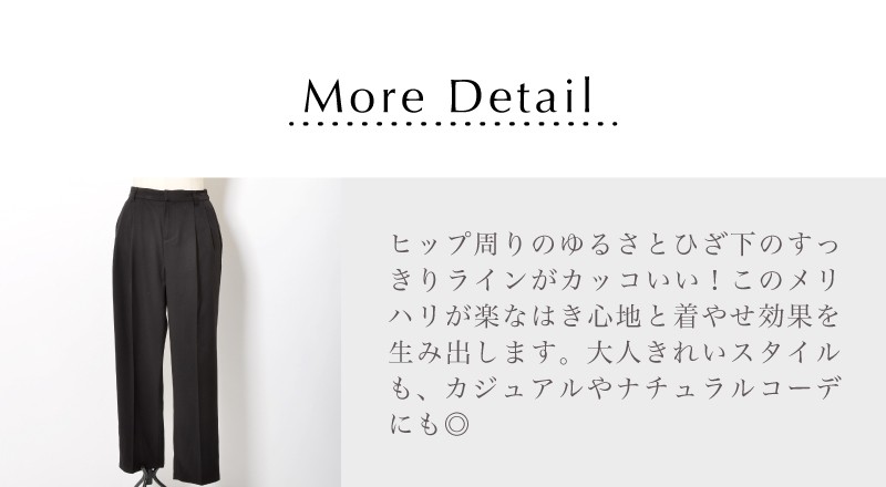 フロントにはタックを施し、腰周りのもたつきや膨らみ過ぎを防ぎ、きれいなシルエットを生み出します。