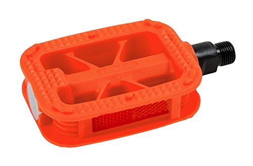 We put the “fun” in “functional.” We put the “fun” in “fundamentally rad.” We put the “fun” in “funky cold medina.” Alright, maybe we don’t put the “fun” in that last one. Regardless, it’s time to get off your booty, grab a pair of Retrospec’s Fun Resin Pedals, and hop on that bike of yours. These pedals are available in an variety of colors to keep the fun going. The resin composition and interior triangle formation mean these pedals are long lasting. Both top and bottom surfaces have grooves and ridges to keep your feet from slipping off. We’ve also included recessed reflectors to keep you safe while you ride. These commuter pedals pack a punch and are practical and spunky as all get-out. (Please note these pedals measure 9/16” and do not fit one piece steel cranks. Most kid bikes use ½” pedals.)Feature