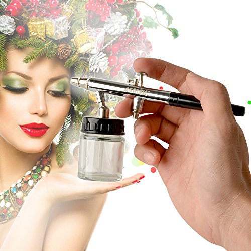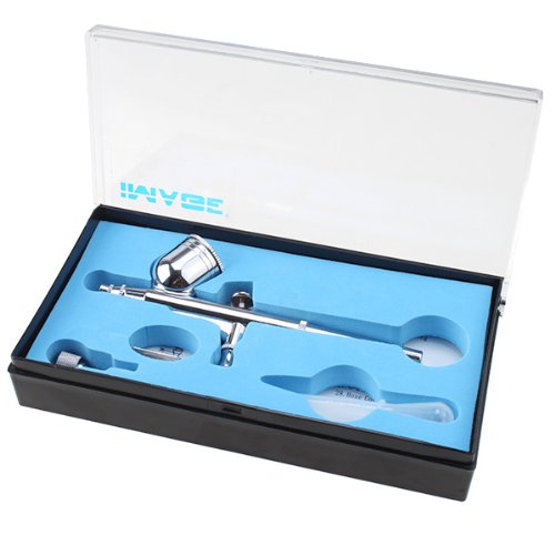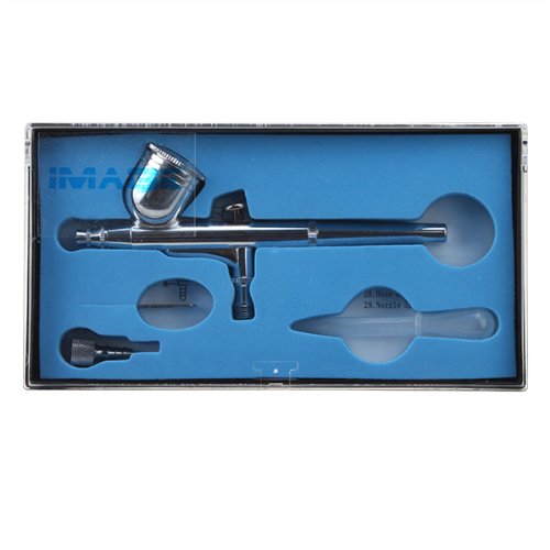 Specification: Feed Type: Gravity. Nozzle: Dia.0.3mm. Glass Jars: 7CC. Working Pressure: 15-50PSI. Double-action Trigger Air-paint Control.