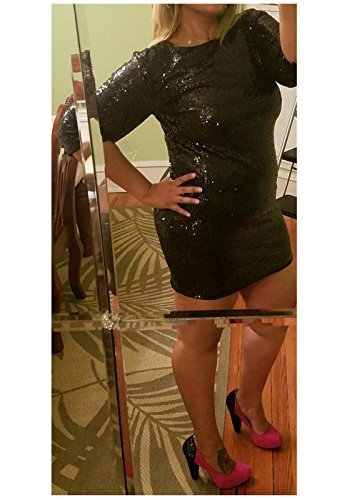 3/4 sleeve gold sequin dress is a sparkly party dress perfect for any special occasion! A short sequin dress with sleeves that you can wear as a holiday dress or New Years dress. Sexy fitted sequin dress also works as a sexy sequin club dress or Las Vegas dress! DETAILS: Mini sequin shell, fully lined. Light stretch throughout, hidden side zipper.