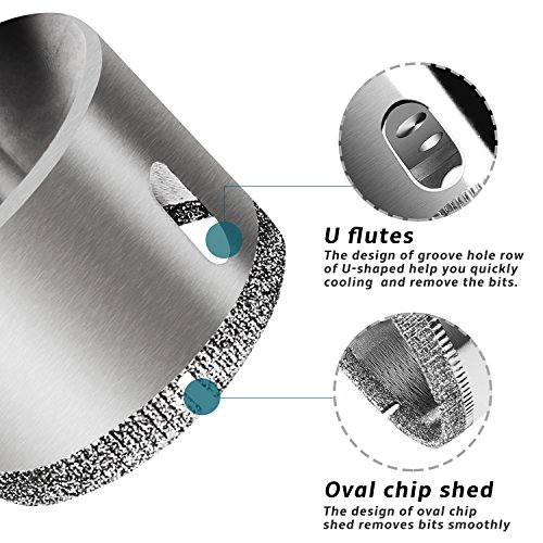 - √ Special Materials. This Diamond Drill Bits are made of High strength carbon steel with durable smooth processed. Increased use of water lubrication will extend drill bit life considerably.