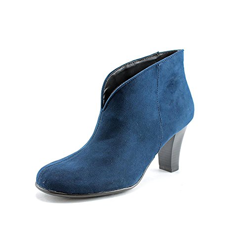 Faux suede bootie with high collar and plunging topline leading to split-toe seam