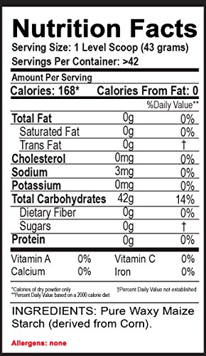 Studio : Muscle Feast, LLC Publisher : Muscle Feast, LLC Binding : Health and Beauty Product Description Muscle Feast gluten free, pure Waxy Maize originates from corn that is grown in the United States. Waxy Maize is a specific type of corn starch with a high molecular weight, allowing it to be digested easily, and will not leave you feeling full and bloated. Unlike maltodextrin, it does not significantly increase the blood sugar levels in the body. Waxy Maize is a great product to take pre-workout for increased energy. It is also a great product to take with protein to build lean muscle. Because of its high cost, it is not included in most weight gain products. You can add this product to virtually any fluid. Waxy Maize may have a chalky taste. Take 1 to 2 scoops as needed to increase daily carbohydrate intake. Serving sizes may be increased for those trying to gain weight. We guarantee our supplements to be the freshest and purest available: Muscle Feast, LLC supplements are manufactured under the strictest HACCP, FDA, and Kosher standards, producing the highest quality and purest supplements available. Our raw ingredients undergo state of the art analysis to ensure zero impurities and strict adherence to product labeling. When it comes to quality you can't beat Muscle Feast. 0
