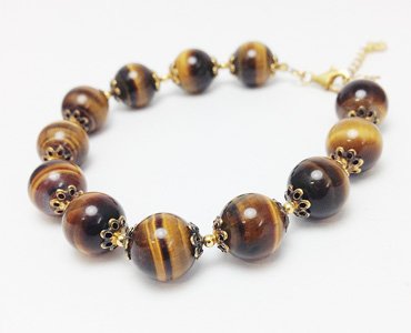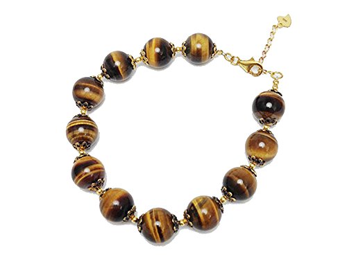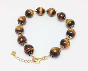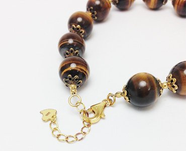 【소재】타이거 아이,SV925YG(옐로우 컬러 코팅) 【크기】약18.5~21.5cm,타이거 아이 약10mm
