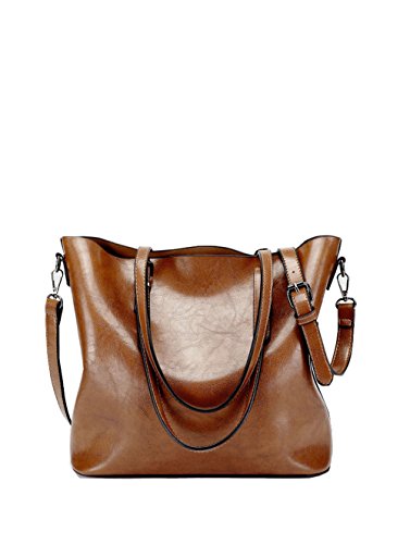 Ecokaki Women’s Vintage Large PU Leather Travel Handbag Hobo Bag Shoulder Bag Sling Bag Cross Body Bag Brown
