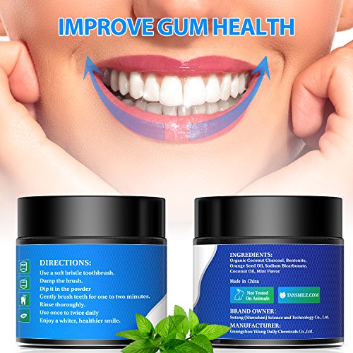 IMPROVE GUM HEALTH: Tansmile whitening charcoal powder can remove teeth stains over time and cleans and polishes your teeth. Our organic charcoal powder will freshens your breath and improve your gum health so as to ensure your healthy and confident smile.