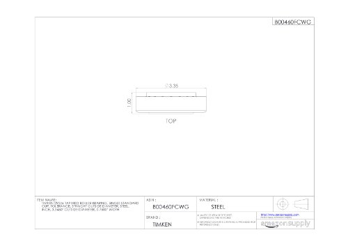 Timken 25526 Tapered Roller Bearing, Single Cup, Standard Tolerance, Straight Outside Diameter, Steel, Inch, 3.3460" Outside Diameter, 0.7500" Width