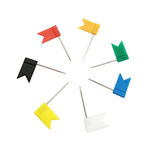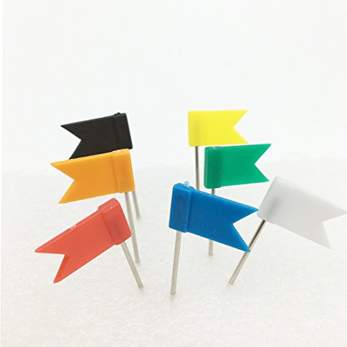 VAPKER 7 Colors Map Marking Flat Flag Shaped Push Pins Pack of 70(Each Color 10 Pcs)