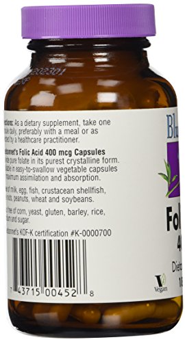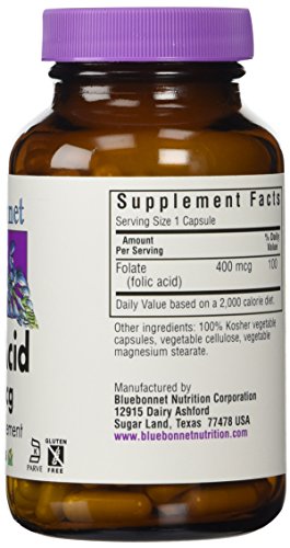 -. Binding : Health and Beauty -. Brand : Blue Bonnet -. EAN : 0743715004528 -. Feature : Used for preventing and treating low blood levels of folic acid / Involved in producing DNA / Helps prevent miscarriage -. IsAdultProduct : 0 -. Label : BlueBonnet -. LegalDisclaimer : This statement has not been evaluated by the Food and Drug Administration. These products are not intended to diagnose, treat, cure or prevent any disease. -. Manufacturer : BlueBonnet -. Model : 743715004528 -. MPN : 452 -. NumberOfItems : 1 -. PackageQuantity : 1 -. PartNumber : 452 -. ProductGroup : Health and Beauty -. ProductTypeName : HEALTH_PERSONAL_CARE -. PublicationDate : 2015-05-16 -. Publisher : BlueBonnet -. ReleaseDate : 2015-05-13 -. Size : 180 -. Studio : BlueBonnet -. Title : Bluebonnet Folic Acid 400 mcg Vegetable Capsules, 180 Count -. UPC : 743715004528
