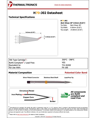 Thermaltronics H70-J02 Bent Sharp 30deg 0.5mm (0.02") interchangeable for Hakko T31-02J02