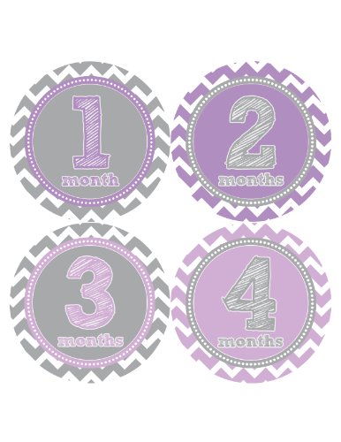 Months in Motion 024 Baby Month Stickers Baby Girl Purple Chevron Monthly Age