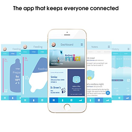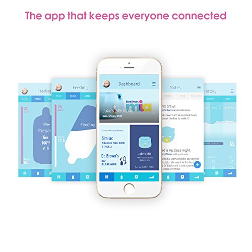 -. Binding : Baby Product -. Brand : BlueSmart -. Feature : Smart sleeve Baby-safe sleeve tracks every feeding so you know when, what and how much baby's eating. Removable for easy cleaning. / Wireless charger Convenient wire-free, worry-free charging. / Syncs with smartphone app Know the amount and temperature of all baby's feedings as the WiFi-enabled sleeve syncs with the app. / Works with most bottles Fits any regular-shaped transparent bottle (2.1 in to 2.6 in/53.5mm to 66mm. Bottle not included). -. IsAdultProduct : 0 -. Label : BlueSmart Technology Corp. -. LegalDisclaimer : Not intended to replace the advice of your pediatrician. -. Manufacturer : BlueSmart Technology Corp. -. Model : BM01-B -. PackageQuantity : 1 -. ProductGroup : Baby Product -. ProductTypeName : BABY_PRODUCT -. Publisher : BlueSmart Technology Corp. -. Studio : BlueSmart Technology Corp. -. Title : BlueSmart Mia