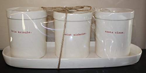 Rae Dunn by Magenta KRIS KRINGLE, SAINT NICHOLAS., SANTA CLAUS. in Christmas Red typeset letters 3 piece set of Utensil Holders Organizers on Tray.