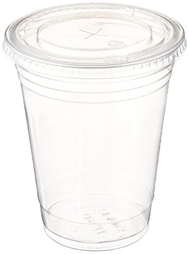 Table To Go 24 Oz 50 Piece Set Plastic Clear Cups with Flat Lids for Iced Coffee Bubble Boba Tea Smoothie