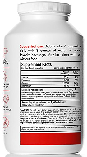-. Feature : ✅EFFORTLESS KETOSIS, KETO MADE EASY (contains caffeine): Codeage exogenous ketones capsules get you into ketosis. Our beta-hydroxybutyrates (BHB) formula was designed for those on a ketogenic diet, or for others who may strle to get back into ketosis after eating carbs. Helps improve athletic endurance, mental performance, and energy levels** / ✅KETO-FRIENDLY CAPSULE SUPPLEMENT, NO ADDITIVES: Codeage activated exogenous ketone formula is a breakthrough technology that couples beta-hydroxybutyrates (BHB) with MCTs and antioxidant-rich adaptogenic herbs to help you enhance your fat burning mode and take your performance to the next level**. Codeage Blend contains ZERO carbs and ZERO fillers / ✅HIGH QUALITY: Codeage exogenous ketones capsules formula contains high-quality exogenous ketones in the form of BHB salts to assist your ketogenic burning power!** / ✅EASY TO USE & FAST RESULTS: Capsules are the most convenient and fastest way to help you get into the fat-burning zone. Take them along with you anywhere!** / ✅ESSENTIAL: Exogenous Ketones contain approximately 100mg of naturally occurring caffeine from green coffee beans to give you and your metabolism an extra boost of energy