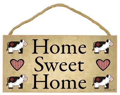(SJT13026) Home Sweet Home (With Cow) 5" x 10" Wood Plaque Sign