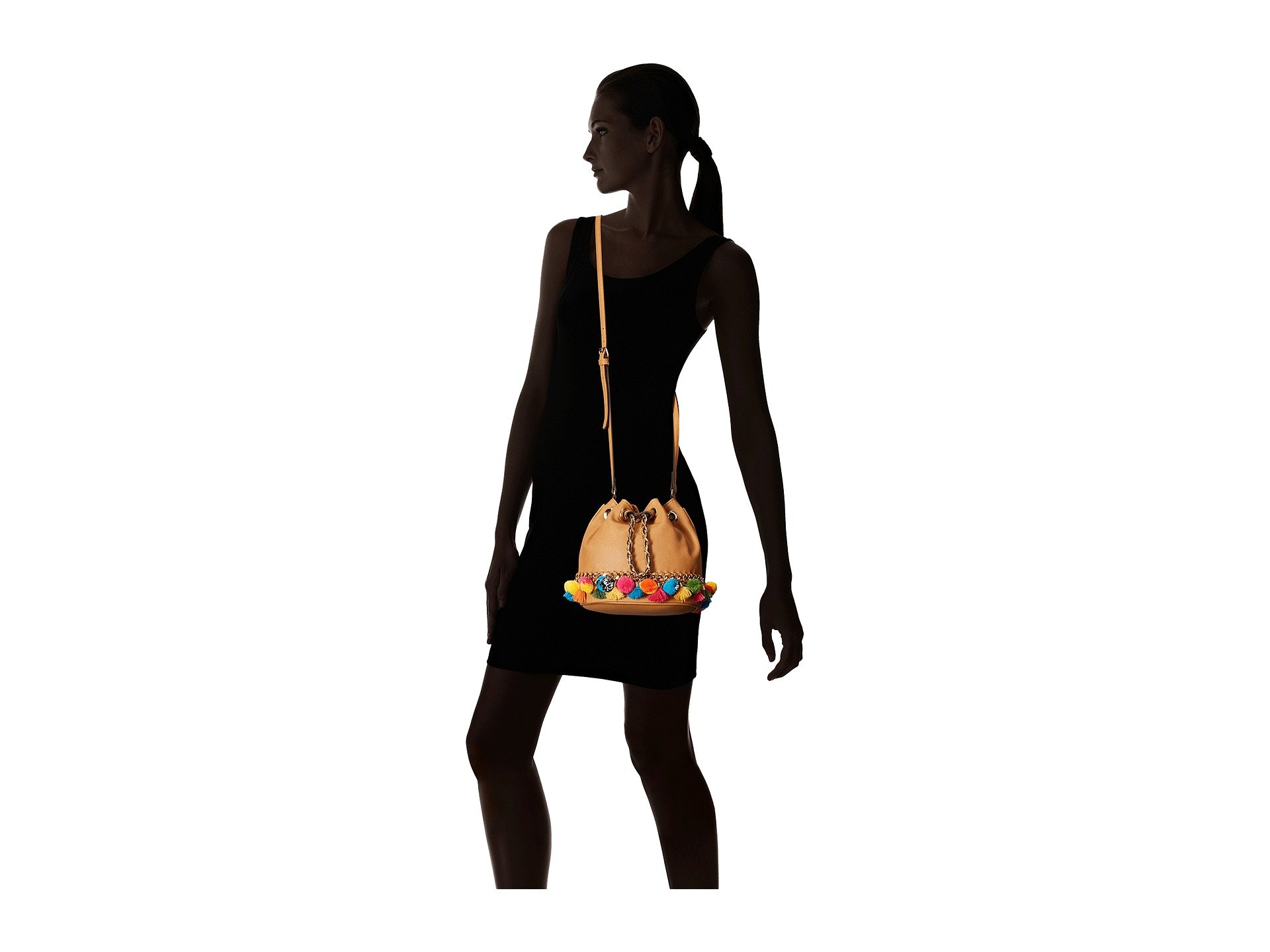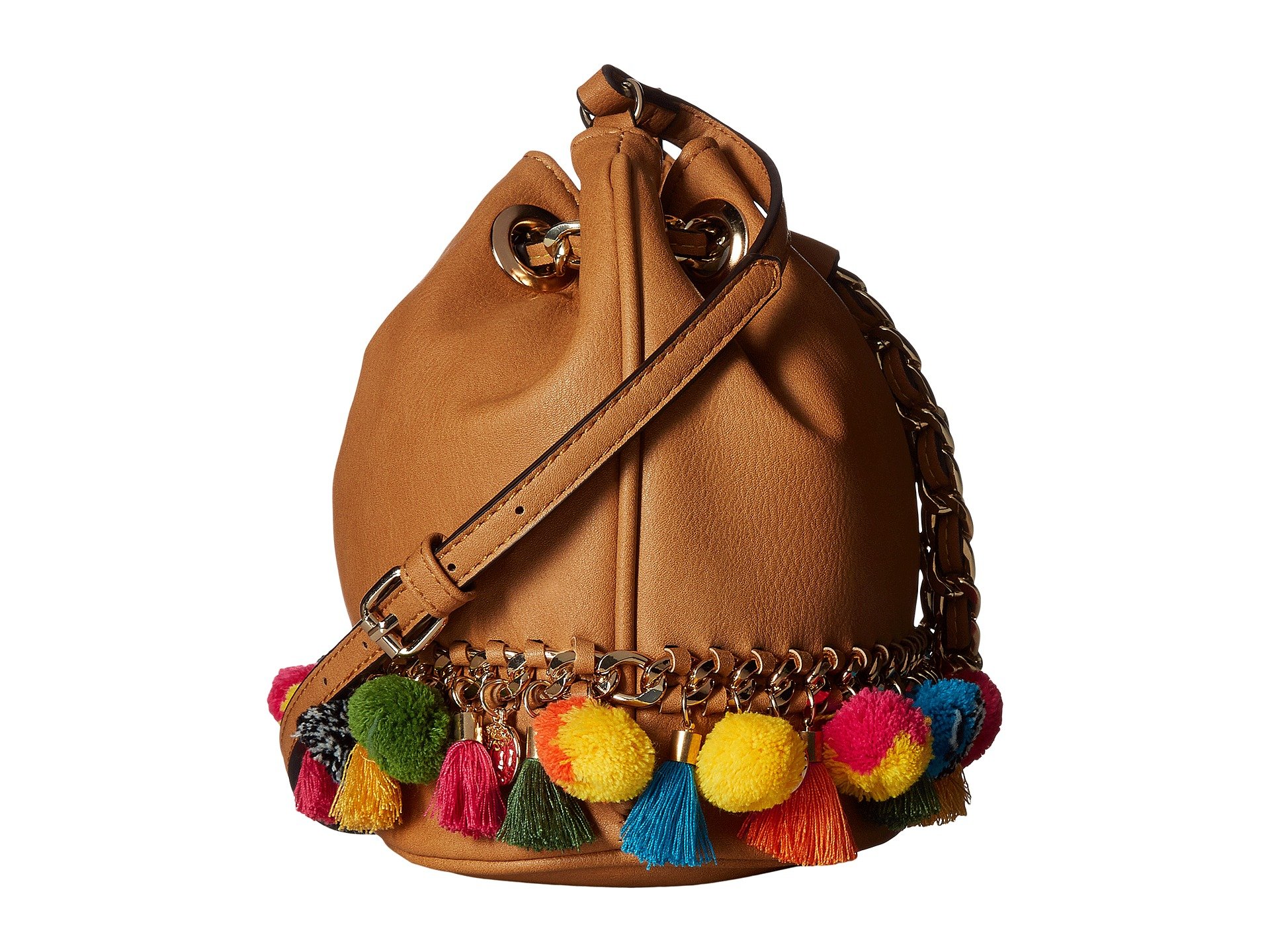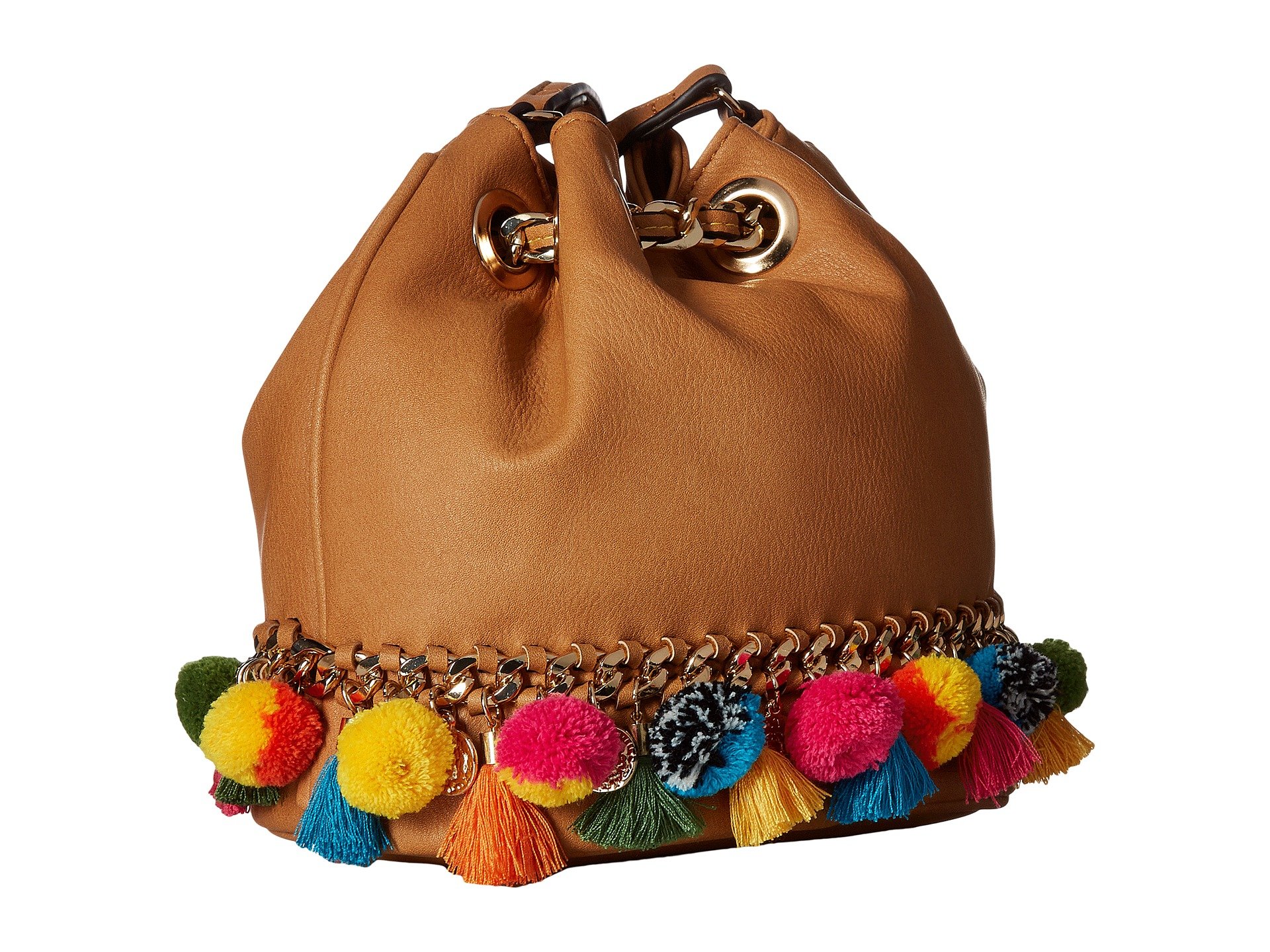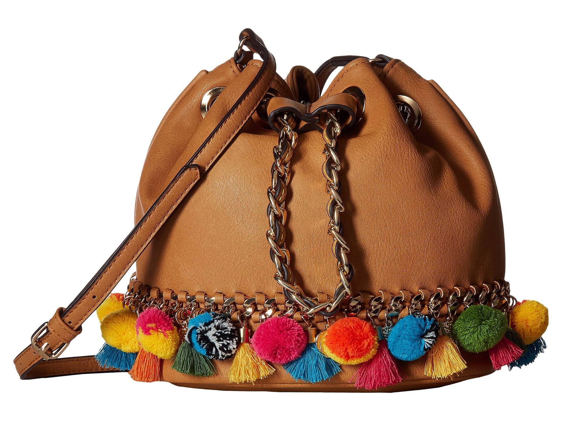 | Product Information SKU: #8927491Make your vote count with this elegant Ballot bucket bag.Made of polyurethane with colorful fabric tassels and charms.Drawstring closure with chain.Shoulder strap with buckle.Flat bottom.Lining made of polyester.Interior slip pocket.Imported.This product may have a manufacturer's warranty. Please visit the manufacturer's website or contact us at warranty@support.zappos.com for full manufacturer warranty details.Measurements: Bottom Width: 9 in Depth: 5 3?4 in Height: 8 in Strap Length: 45 in Strap Drop: 23 in Weight: 1 lb 9.2 oz |