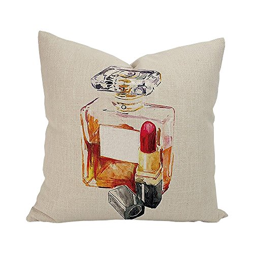 ME COO Modern Fashion Watercolor Perfume Lipstick Bottle Flower Styles Pillow Case Throw Cushion Case Cojines Wedding Gift pillow covers 18 x 18Inches 1pcs