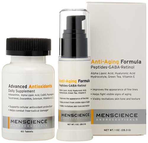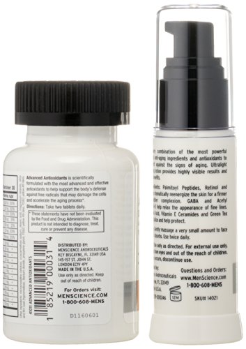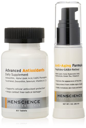 Men's anti-aging system contains two proven products designed to diminish fine lines, wrinkles, crow's feet and more visible aging signs. Anti-Aging Formula features top ingredients to ensure fast results when it comes to younger-looking skin. Advanced Antioxidants contains a prescription-grade formula to protect against free radical damage and other aging factors. Ideal for all skin types and diets.Feature