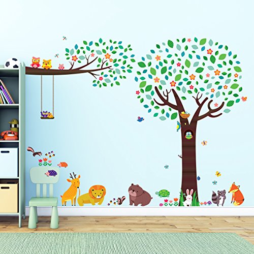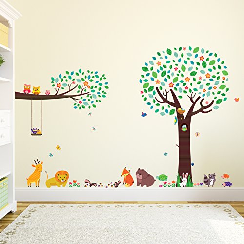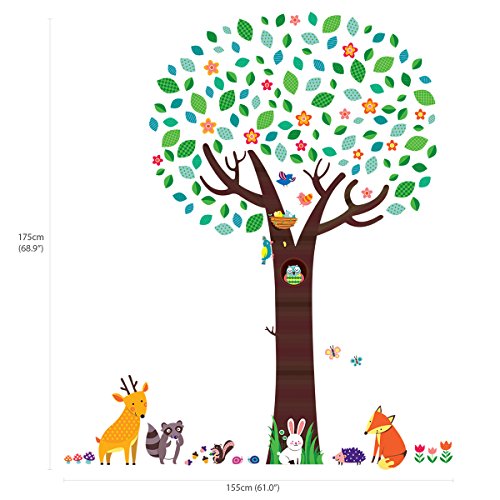 Decowall DML-1312P1410 Large Tree with Animal Friends and Branch with Owls Kids Wall Decals Wall Stickers Peel and Stick Removable Wall Stickers for Kids Nursery Bedroom Living Room
