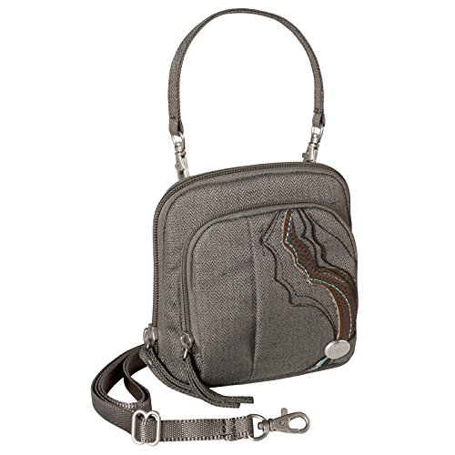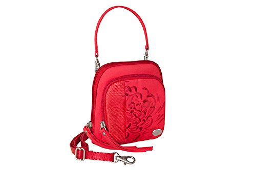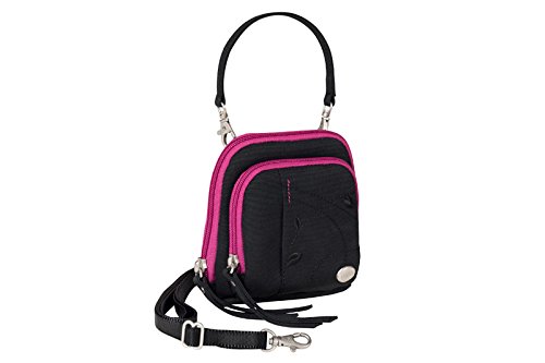 -. Feature : Main zip compartment with 2 zip pockets & one slip phone pocket / Front zip compartment with 8 card slots / Back slip pocket / Top carry handle & adjustable shoulder strap are detachable / 5.5"H x 5"W x 2"D